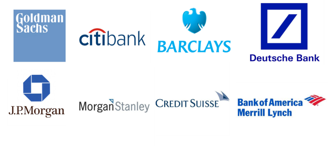 Bulge Bracket有“大量”“批量”的意思,据说这个名字的来源是因为大型投资银行在美国国债和机构债券的拍卖中,总是能买下较大的份额。主要的大型投资银行名字很响亮,所以相信你也一定不陌生:高盛,摩根士丹利,摩根大通,美国银行美林,花旗,巴克莱,瑞士信贷和德意志银行。